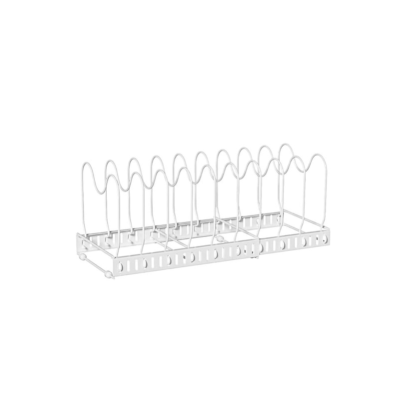 Kitchen Dish Rack, Retractable Dish and Pans and Pots Lid Organizer Rack Shelf for Cabinet, Multifunctional Metal Bowl Holder with 10 Adjustable Compartments (Black) (White, 10Partitions)