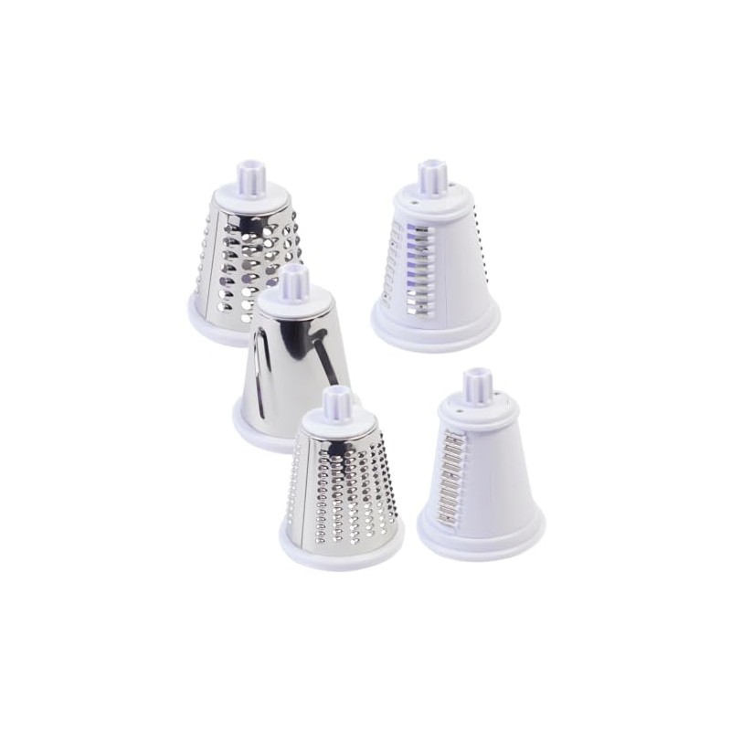 • Versatile: Slice, grate, crinkle cut, julienne, and shred foods with 5 included drums.
