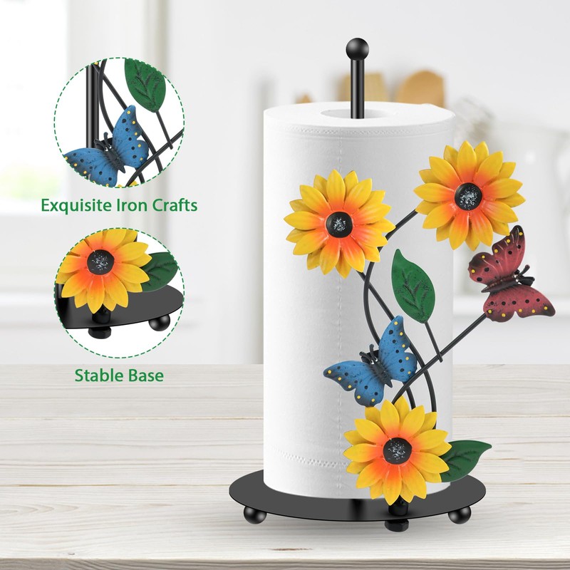 - [Quality Iron Material] This sunflower paper towel holder is made of high quality iron art, sturdy, smooth surface, rust-resistant and anti-oxidation.