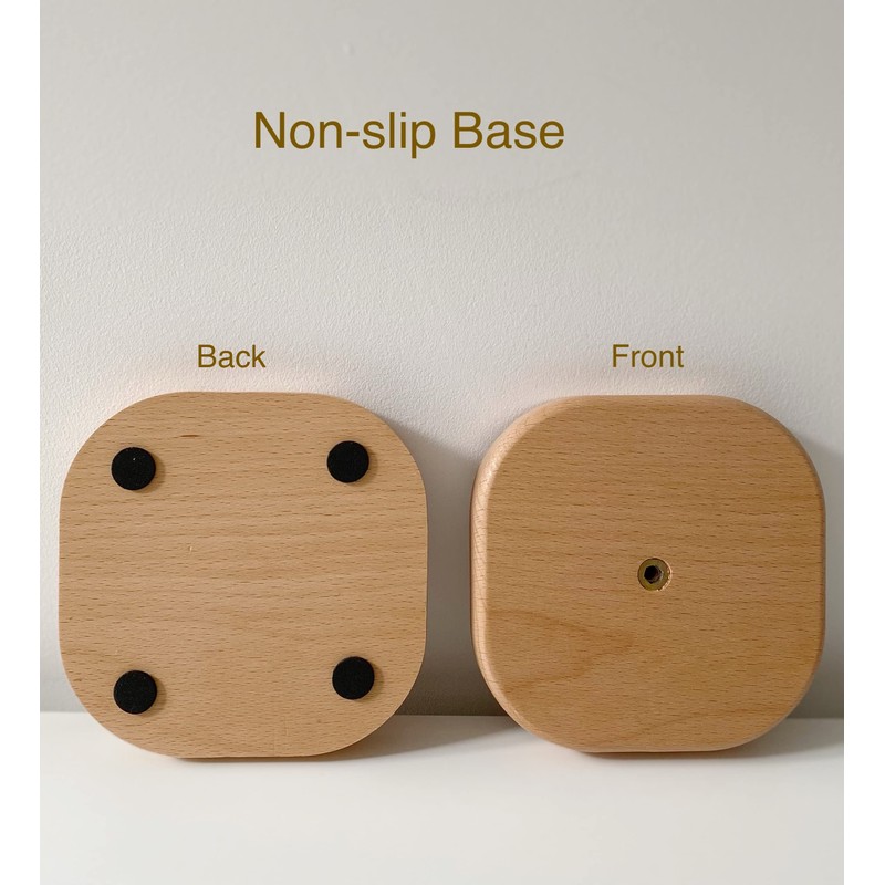 - The holder's base is with 13cm length, 13cm width and 2cm height, a rubber strip at the bottom to stop it from sliding. The wooden pole sits firmly on the base and is very stable.