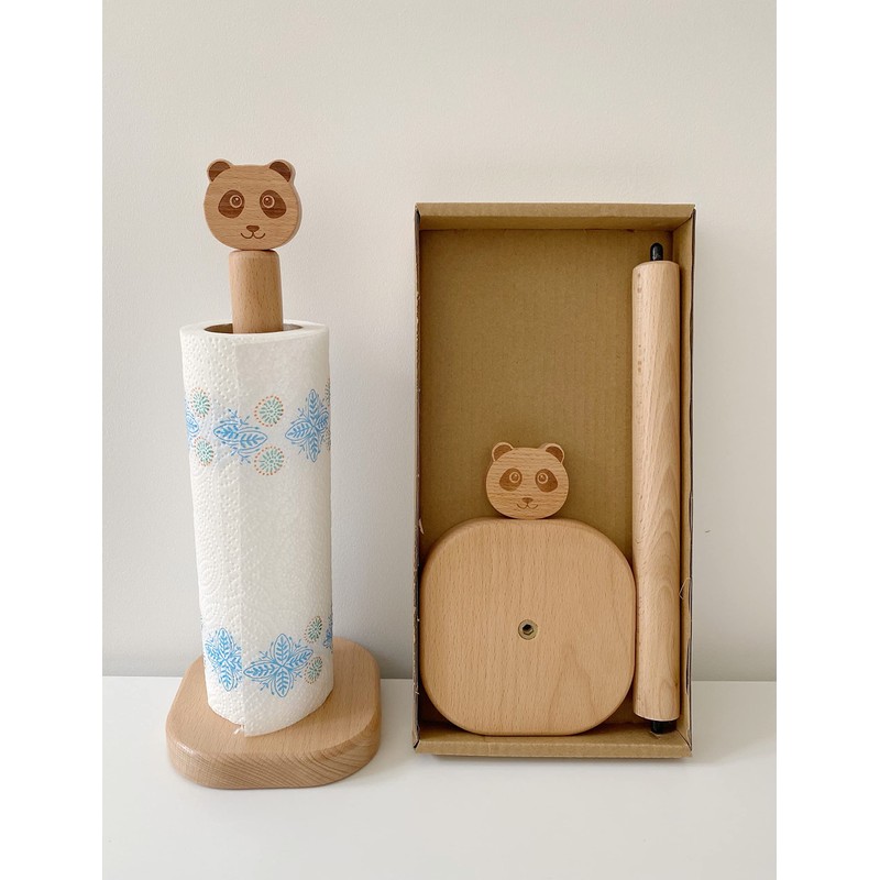Kitchen Roll Holder, Wooden Paper Towel Holder Free Standing, Cute Panda Kitchen Roll Stand