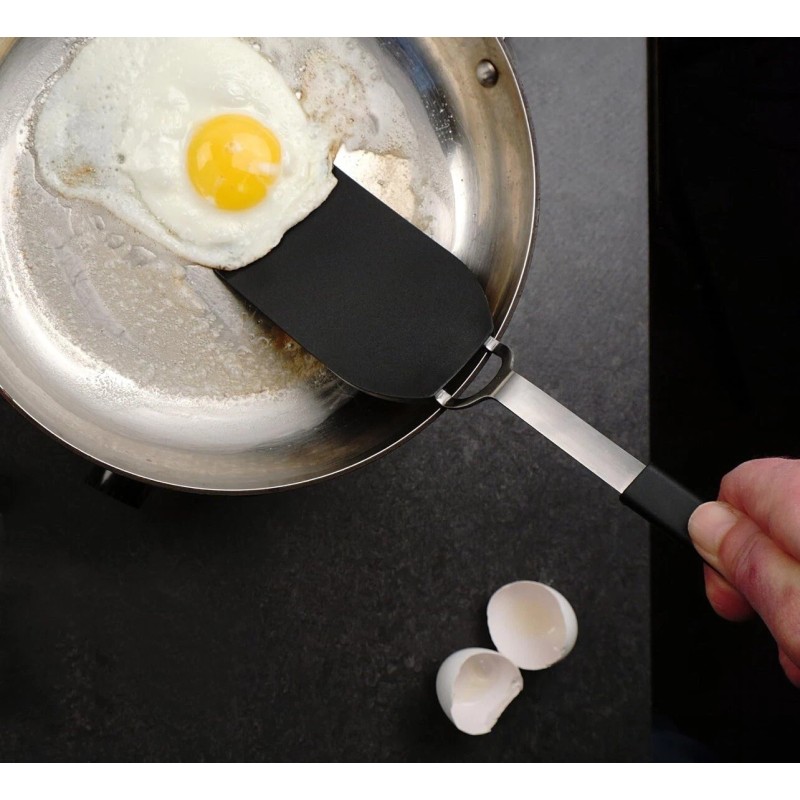 RSVP International Kitchen Tool Collection Flexible Nylon Spatula, Stainless Steel Handle, 12x2.75", Black