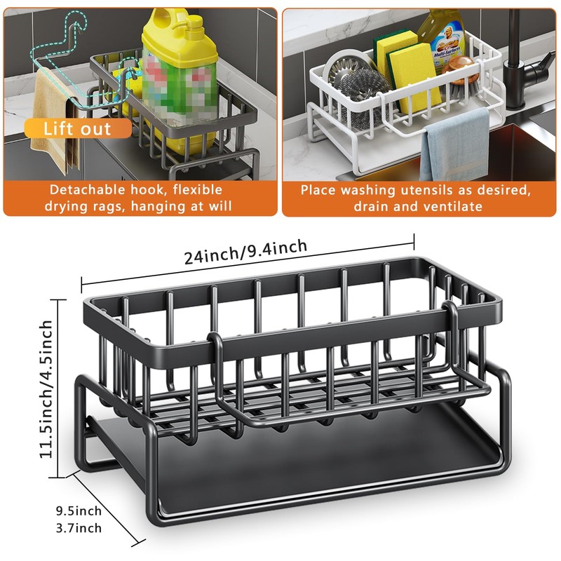 solution for all your daily kitchen needs.It can hold your sponge, dish soap dispenser, cleaning towel, scrubber, and utensils, all in one place,