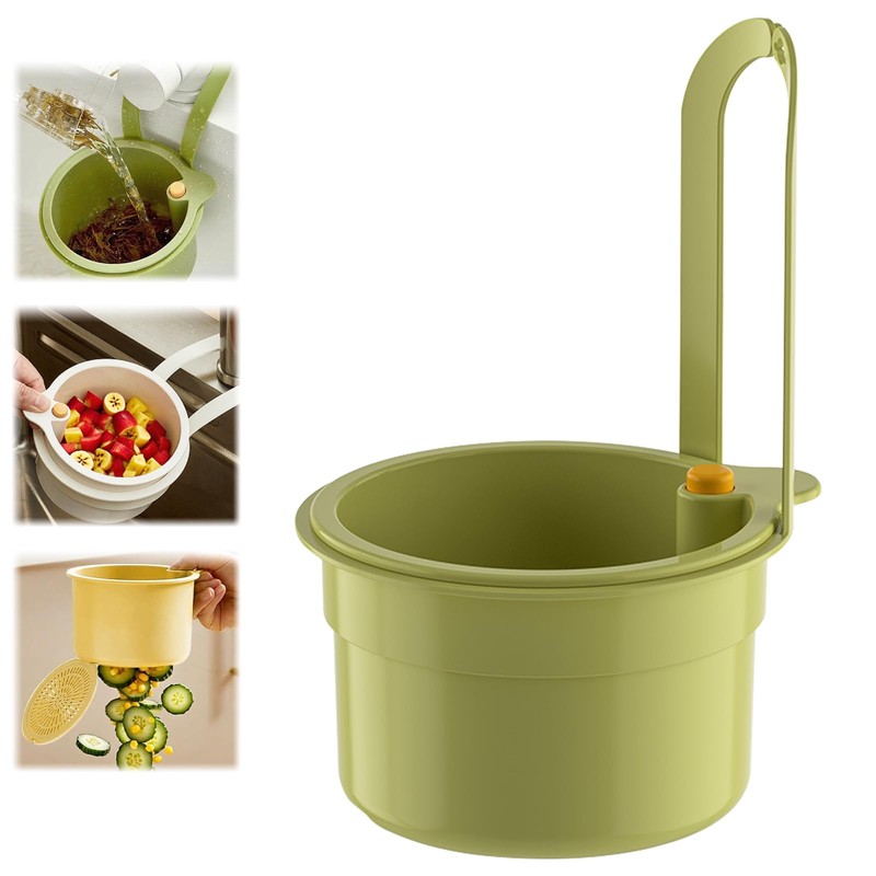 Kitchen Sink Drain Strainer Basket, Hanging Multi-Purpose Kitchen Sink Strainer Draining Basket, Self-Cleaning Press to Open The Food Waste Trash Catcher Basket Garbage Leftovers, Green