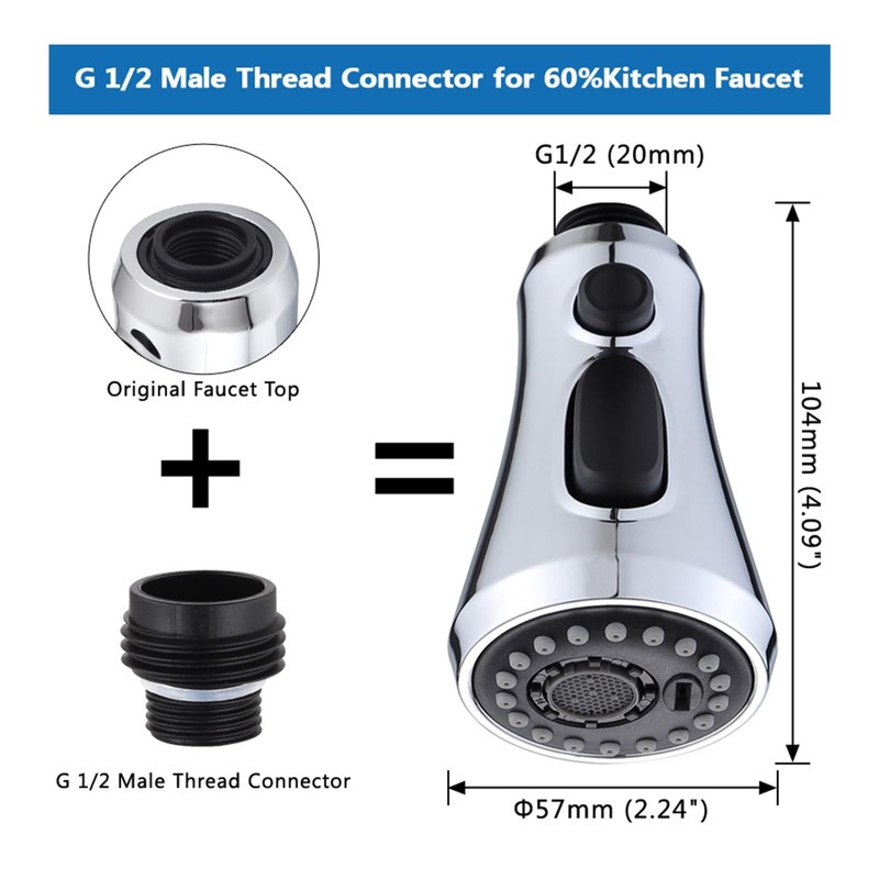 • Simple installation: standard style design; This pull-out faucet is easy to install, choose one of the nine adapters provided to match your faucet, unscrew the old shower head, and replace it with a new one to transform your kitchen.