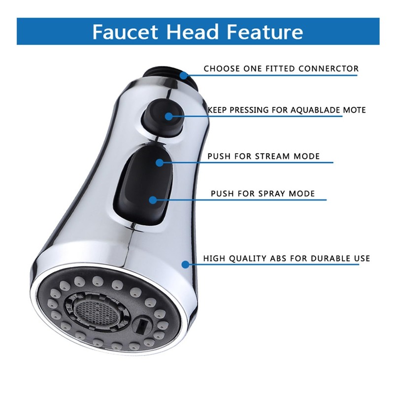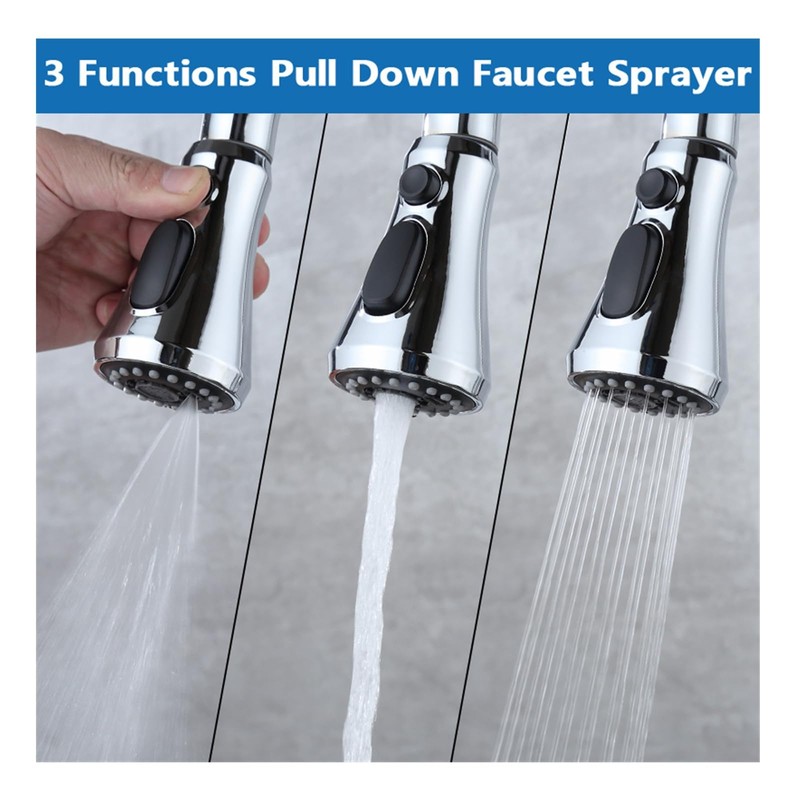 Kitchen Sink Pull-Down Faucet, Head Replacement Part 3 Functions Pull-Out Spr...