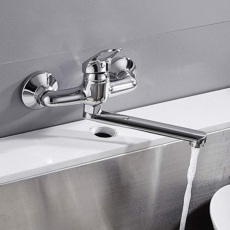 - Advantage:Low wall faucet with horizontal swivel spout and long spout for daily kitchen use.