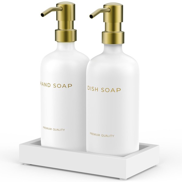 Kitchen Soap Dispenser Set with Tray - Hand and Dish Soap Dispenser for Kitchen,Modern Kitchen Decor & Accessories. (Gold)
