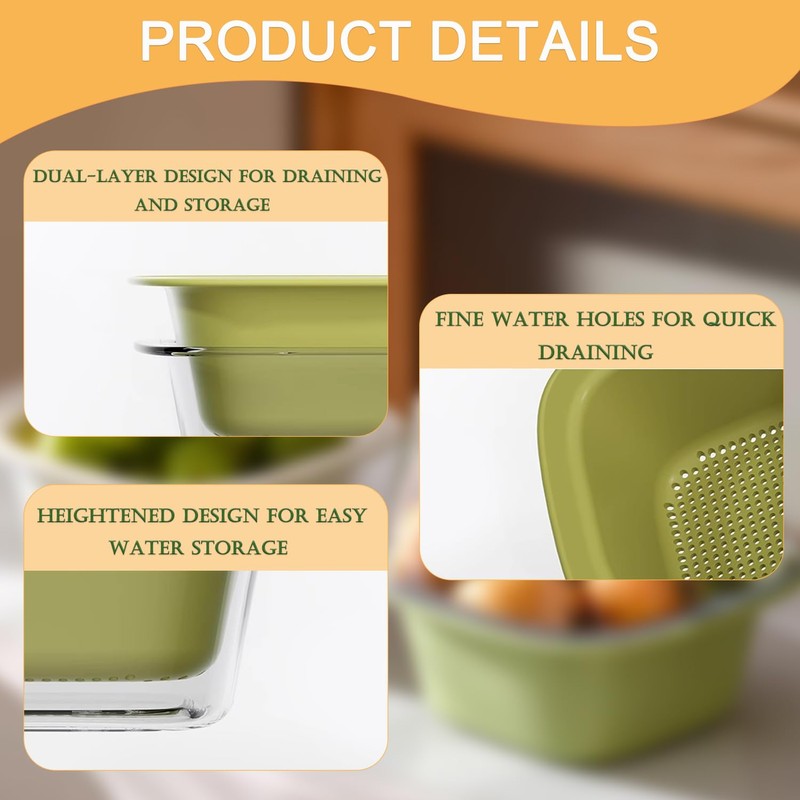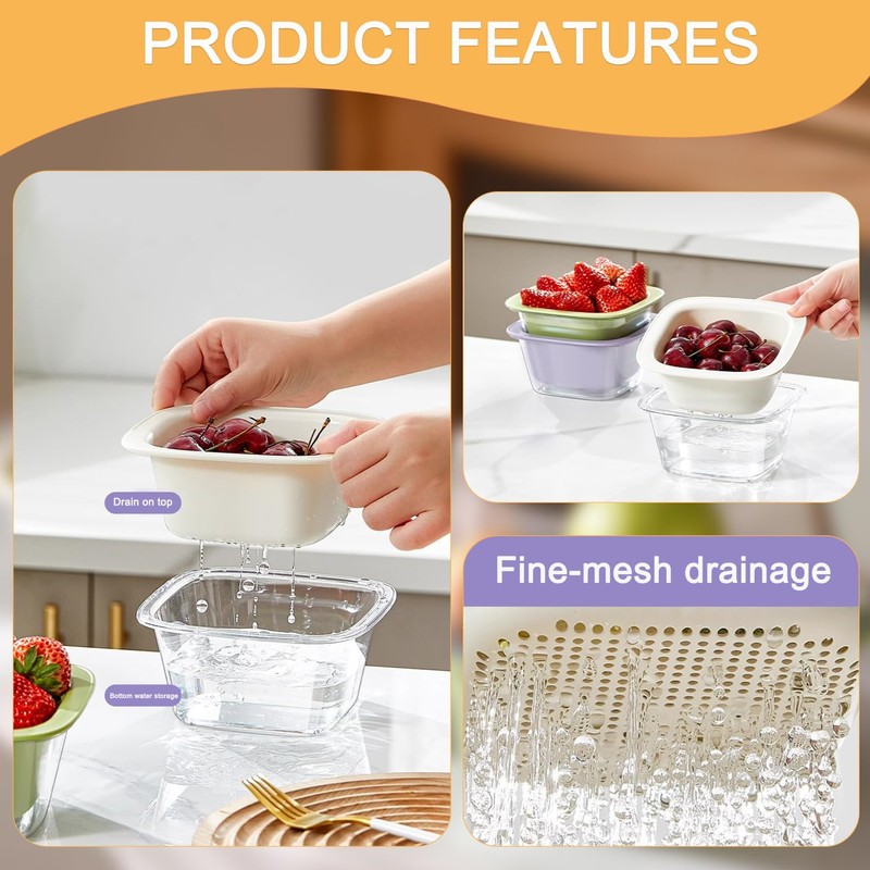 - 2-in-1 design: the fruit basket consists of two layers, a top filter basket and a lower storage tray. The bottom tray can also be turned over as a lid to keep fruit flies away.