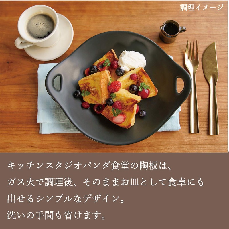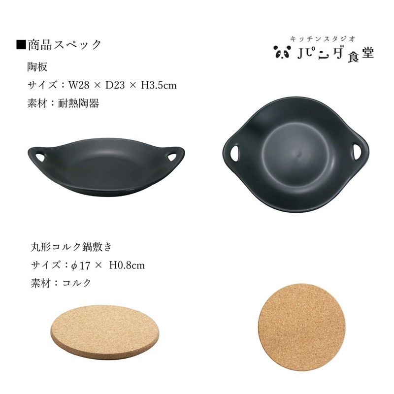 Kitchen Studio 9100-0110 Panda Cafeteria, Heat Resistant, Ceramic Plate, with Cork Trivet, Black