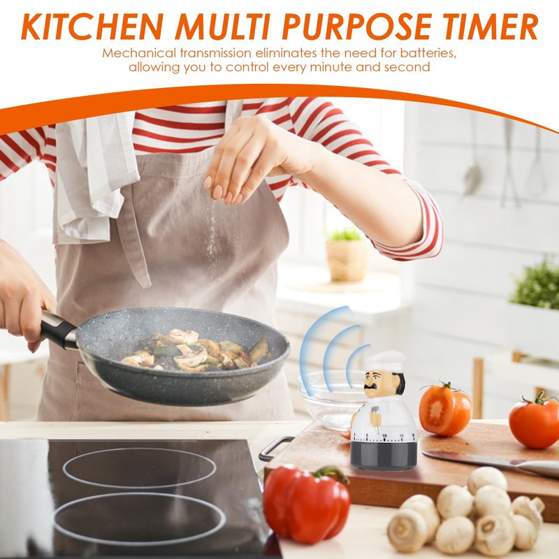 • 【Cute Chef Design】This fun, chef-shaped mechanical timer adds personality to your kitchen while being a practical tool for cooking and baking. Made of durable plastic, it prevents damage from accidental drops and doubles as charming kitchen décor.