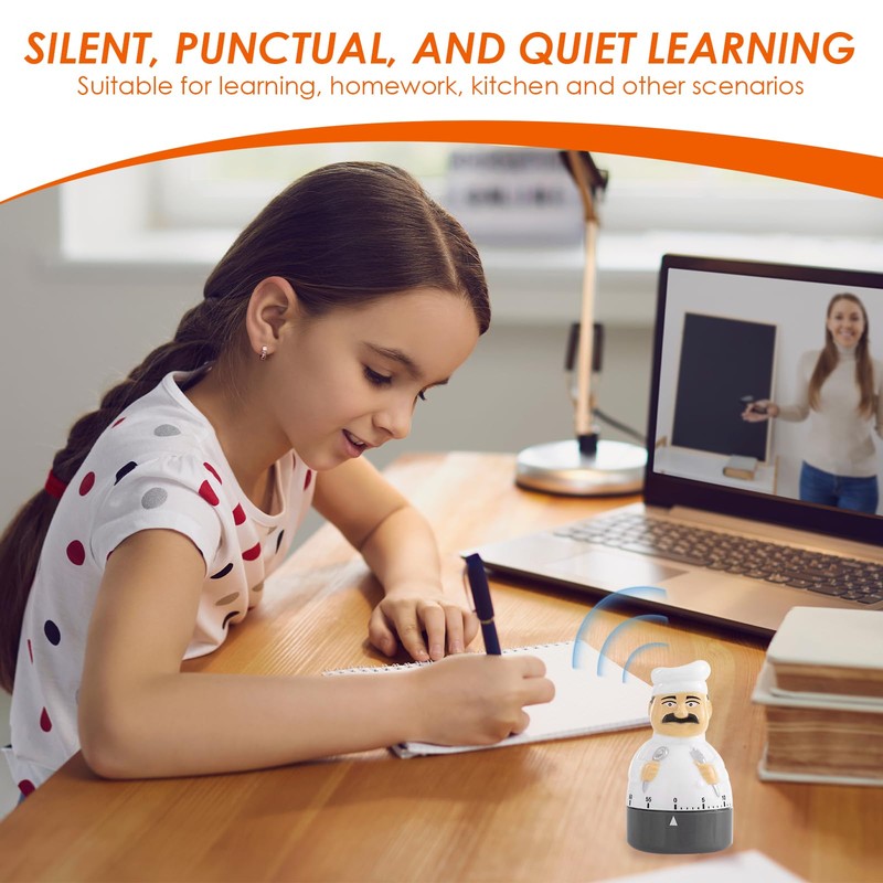 Welcome to buy the new Kitchen Timer – a charming and practical addition to your kitchen! This chef-shaped mechanical timer is not only a useful tool for cooking and baking, but also a delightful piece of kitchen décor. Its fun, chef-inspired design adds personality to your kitchen while keeping you on track with your timing. Made from durable plastic, it’s designed to withstand accidental drops and ensure long-lasting performance. One of the standout features of this timer is that no batteries are required. Thanks to its mechanical inner core, you can rely on this eco-friendly, cost-effective tool for all your timing needs. Simply wind it up, and the timer will provide precise and accurate countdowns for all your kitchen tasks. It’s a hassle-free solution that eliminates the need for frequent battery replacements. Setting the timer is simple and intuitive, thanks to the 360° rotating dial. You can easily adjust the time anywhere from 0 to 60 minutes, providing the flexibility you need for a wide range of activities. Whether you’re baking cookies, cooking dinner, or timing a yoga session, this timer has you covered. When the set time is up, a loud and crisp alarm sounds to alert you, ensuring you never miss your timing. The versatile usage of this timer makes it perfect for more than just cooking. Use it to time kids' homework, manage your yoga or meditation sessions, track face mask applications, or keep meetings on schedule. It’s an ideal tool for parents and children to collaborate on fun activities like baking together, ensuring everyone stays on track. Finally, the loud and clear alarm is designed to grab your attention. It lasts for 3-5 seconds, so you won’t miss it even if you’re in another room. With its simple calibration and easy-to-use manual operation, this timer is perfect for all ages. Plus, it comes with a two-year warranty, giving you added peace of mind. Whether you're an experienced chef or just starting out in the kitchen, this kitchen timer is the perfect companion. Add this charming, functional tool to your kitchen today!
