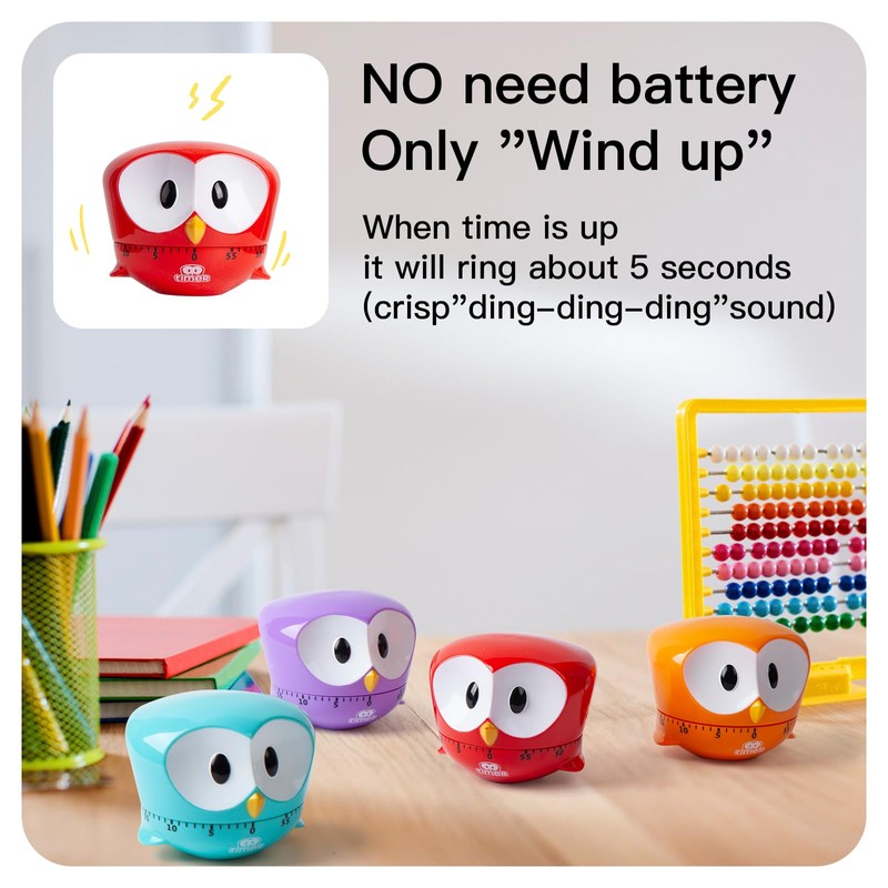 This cute big ey eagle cooking egg timer works with a practical and economical spring wound. No Batteries Required, which makes you do not have to worry about battery no power.