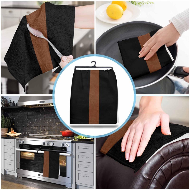 Kitchen Towels Set of 2 Brown Black Dish Towels and Dishcloths Sets Decorative Tea Towel Boho Style Absorbent Hand Towels for Kitchen Bathroom Drying Cleaning Backing Home Decor