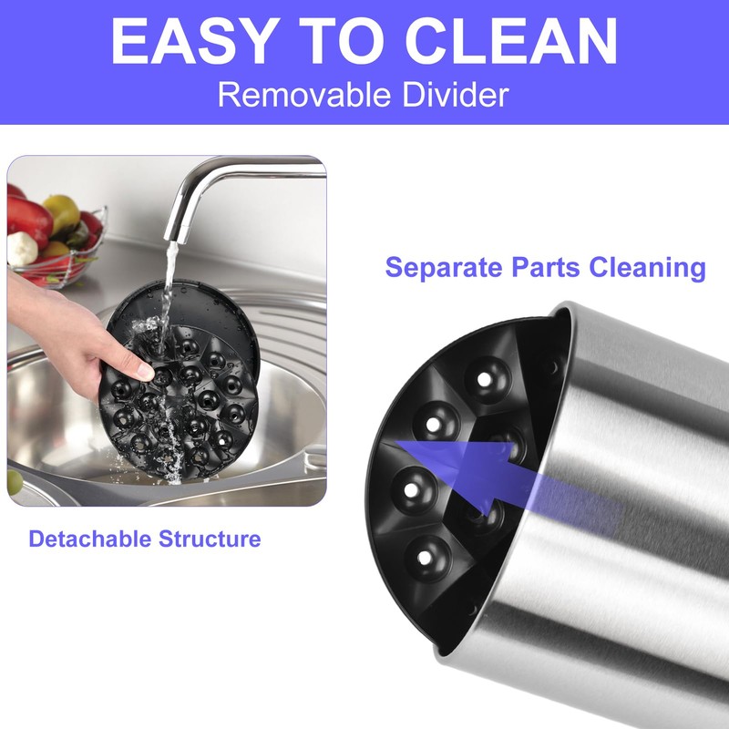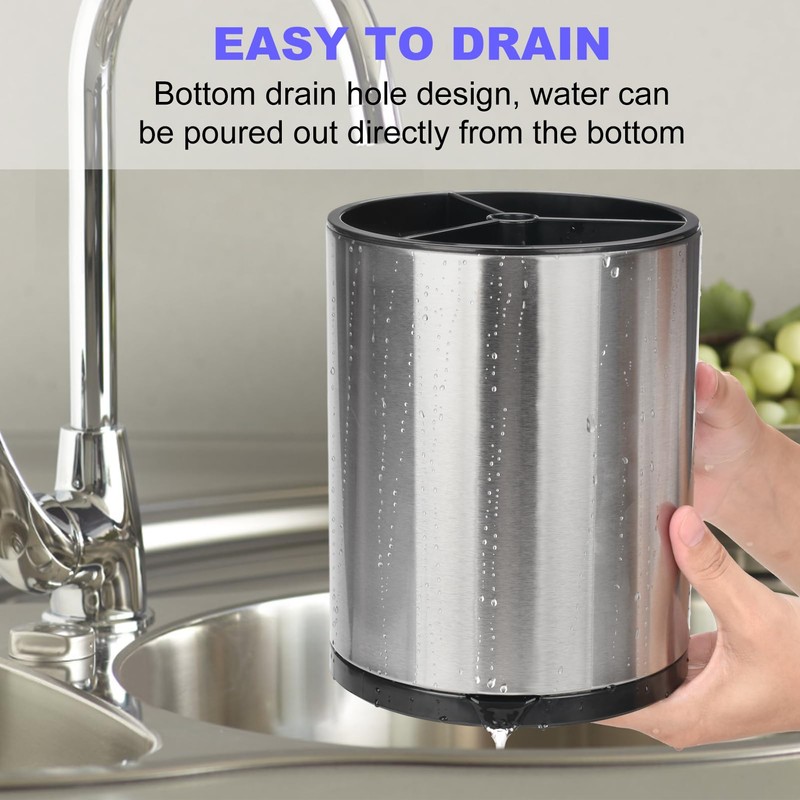 - CONVENIENT DRAINAGE DESIGN - The utensil organizer with a detachable tray and widened drainage holes on the bottom, you can dump out water directly no need to take out the utensils or turn the utensil holder upside-down.