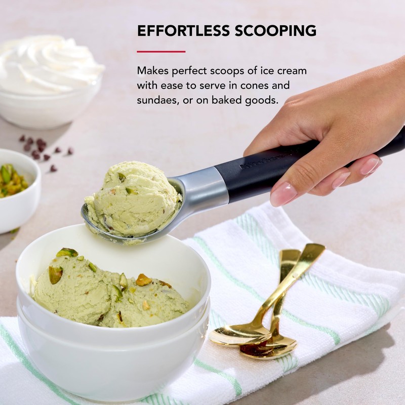 - EFFORTLESS SCOOPING: makes perfect scoops of ice cream with ease to serve in cones and sundaes, or on baked goods