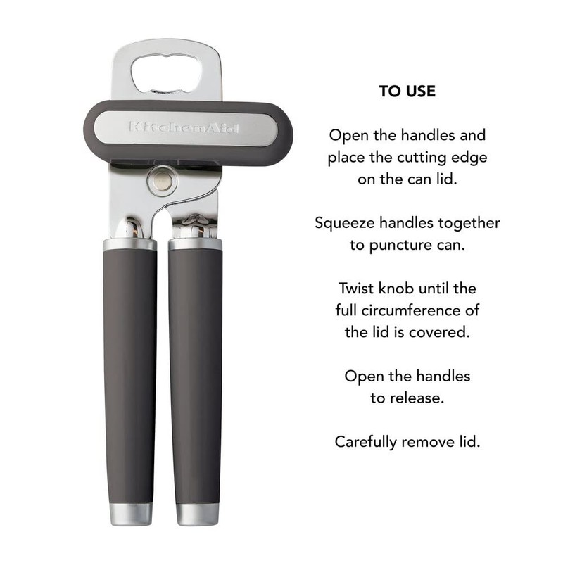 - STAINLESS STEEL BLADE: The KitchenAid Can Opener is made from strong 420 J2 stainless steel that will easily puncture and open all types of cans
