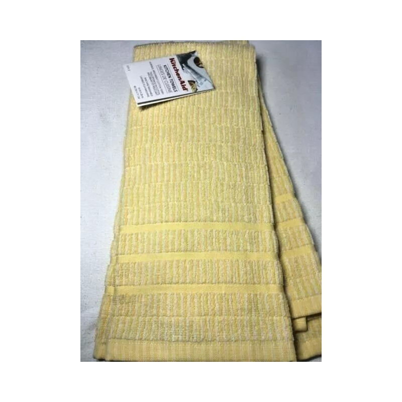 KITCHENAID KITCHEN TOWELS (2) YELLOW WHITE BARS 100% COTTON NIP