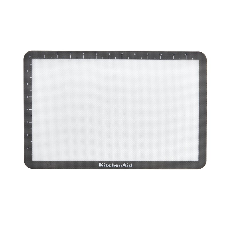 This KitchenAid 9x14 Baking Mat is designed to fit snugly in a small KitchenAid Baking Sheet. The mat promotes even heat distribution, which results in better baking and great results every time. The mat is nonstick and heat-resistant to 500F, and takes the place of parchment paper or foil while baking. Dishwasher safe.