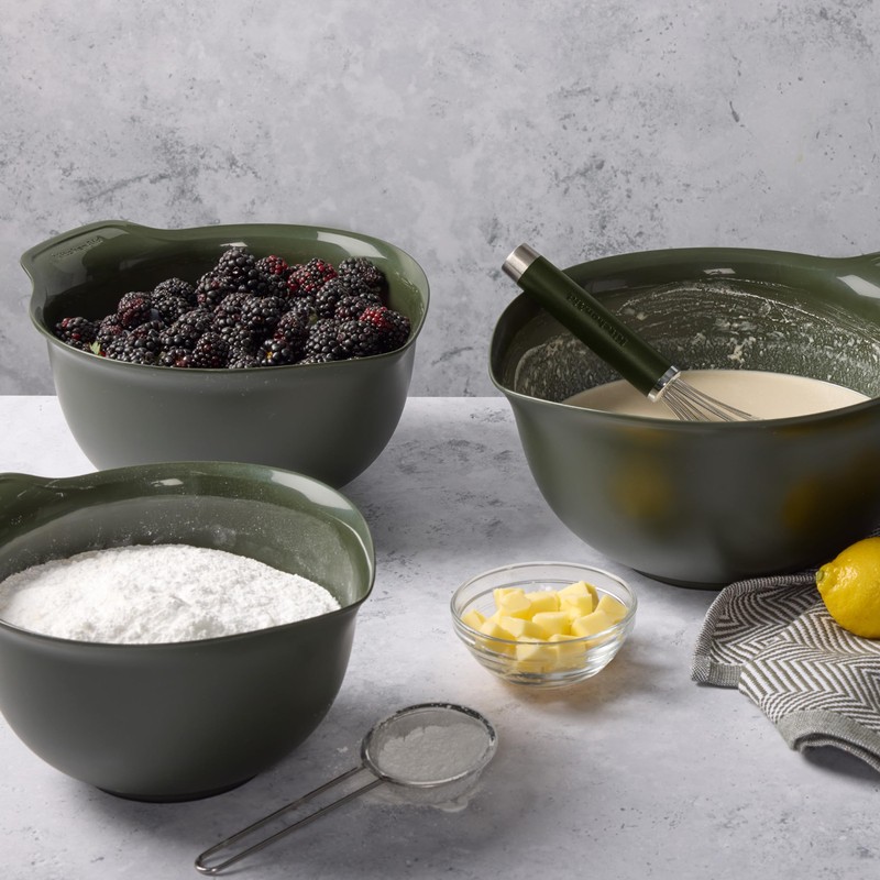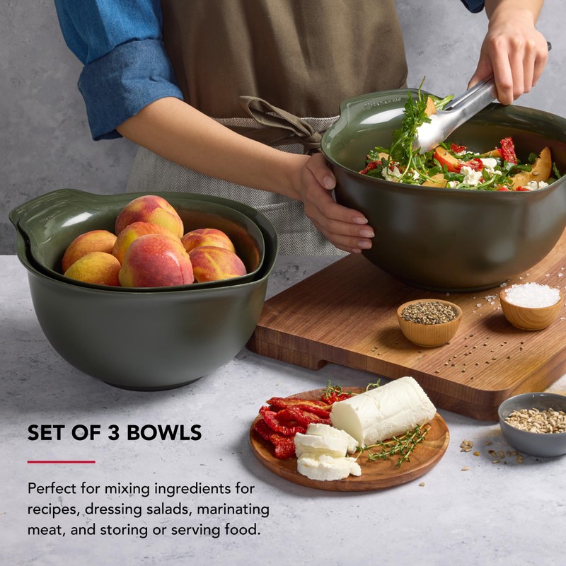 KitchenAid Universal Nesting Plastic Mixing Bowls, Set of 3, 2.5 quart, 3.5 quart, 4.5 quart, Evergreen