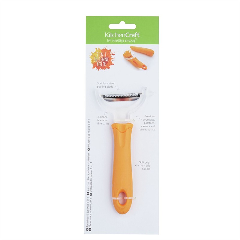 KitchenCraft Healthy Eating Soft-Grip 2-in-1 Julienne Peeler, 16.5 cm (6.5") - Orange