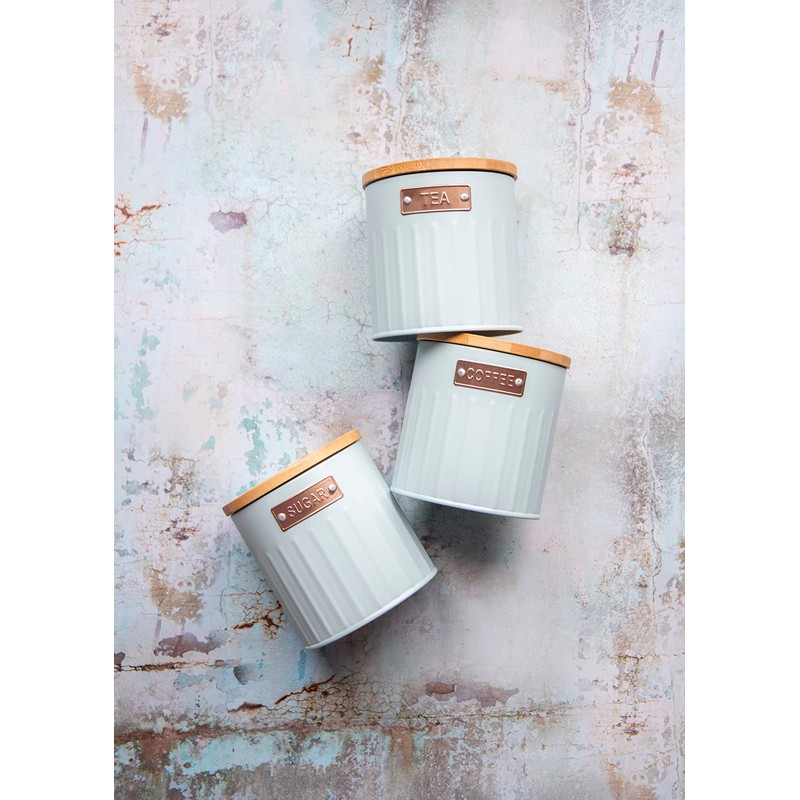 • LABELLED CANISTERS: for tea, coffee and sugar