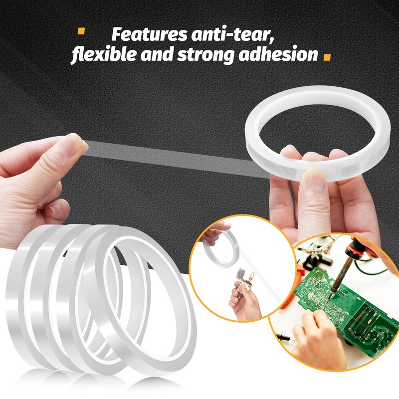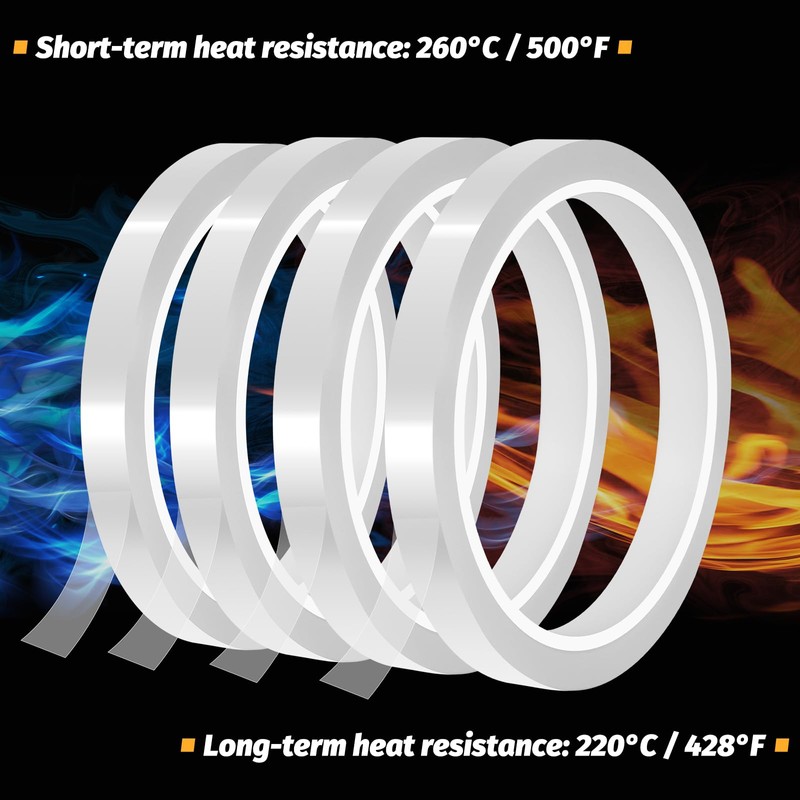 KitchenRaku Polyimide High Temperature Tape 10mm×33m/108ft, Heat Resistant Strong Adhesion Tape for Sublimation Heat Transfer Printing 3D Printer, Soldering, Electronic Applications (4, Clear)
