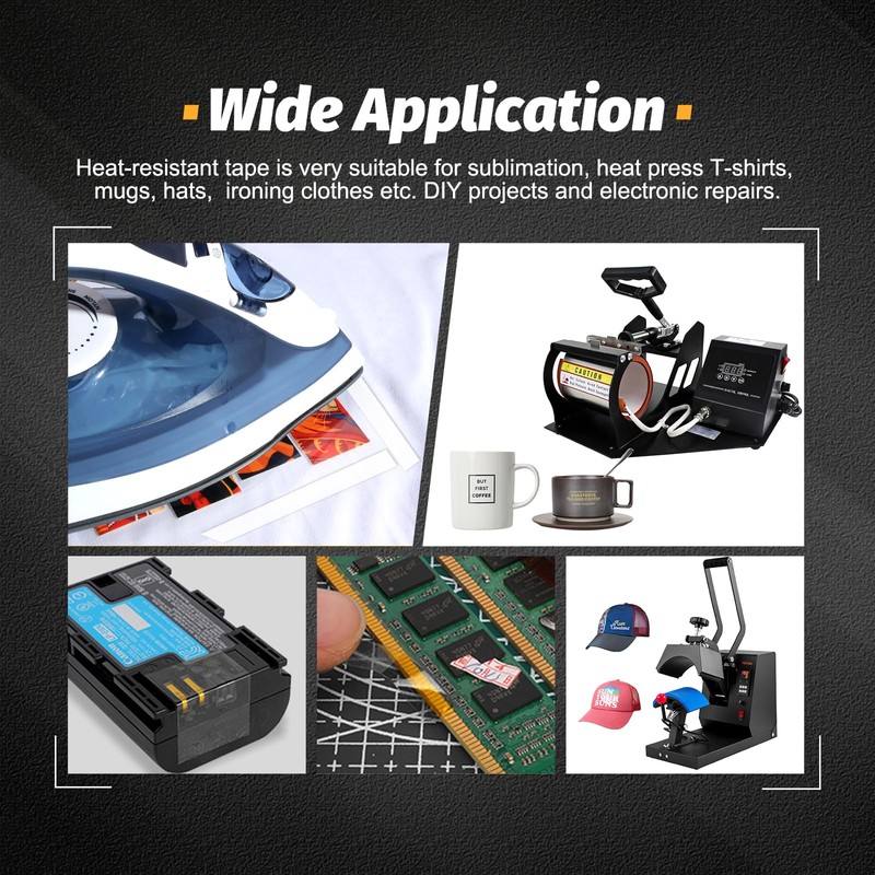 - Package includes 10mm×33m heat resistant tape to meet your daily needs in different situations such as heat press transfer, masking, electronic repair, and DIY projects. It is also suitable for industrial applications, including the protection layer for pipelines, wire insulation, and seal parts.