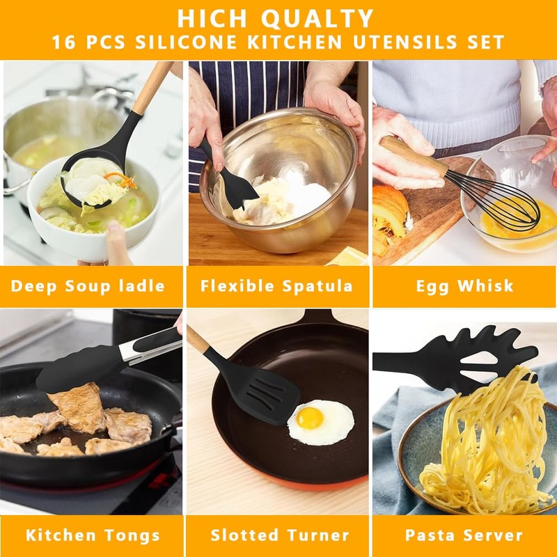 - Safe & Easy to Clean:FDA-grade silicone heads (450°F heatproof) won’t scratch pans. Anti-rust coating & seamless design prevent food residue. Dishwasher-safe.