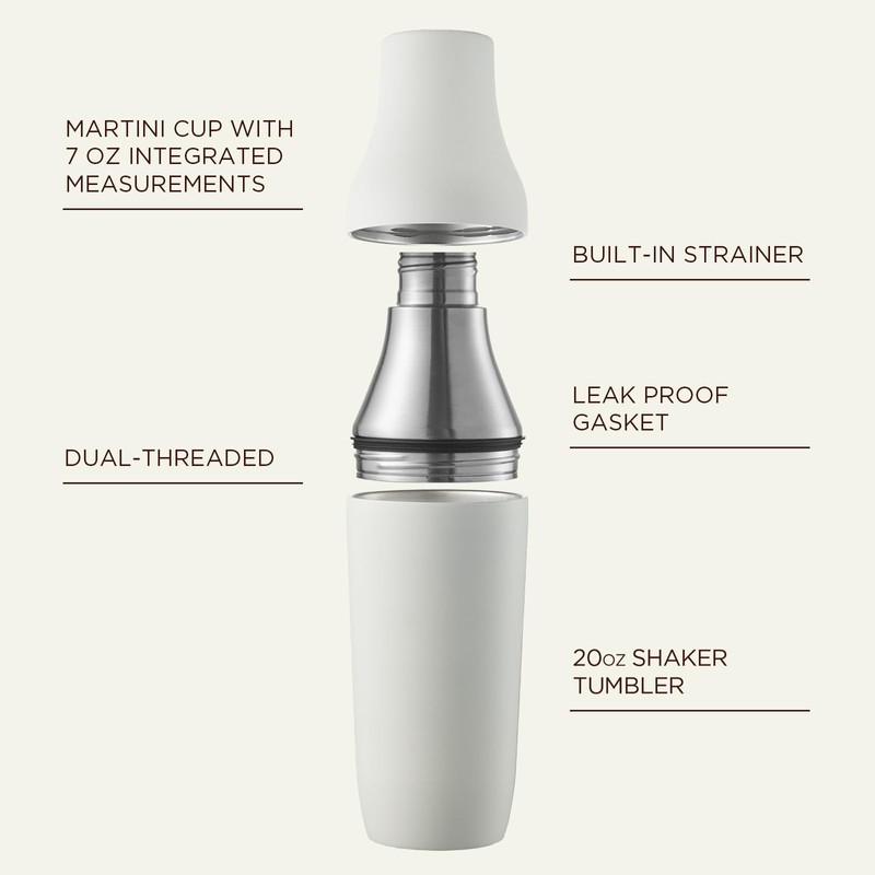 - CHILLER, COZIER, NEATER - The innovative cocktail shaker featuring a double-wall vacuum insulation, not only lasting drinks chill, but also prevents freezing hands and condensation pooling; and the exclusive dual-threaded twist-Lock design ensures 100% leak-proof, no frozen stick, while super easy to on/off switch. 20oz tumbler allows 3 cocktails to be made at once.