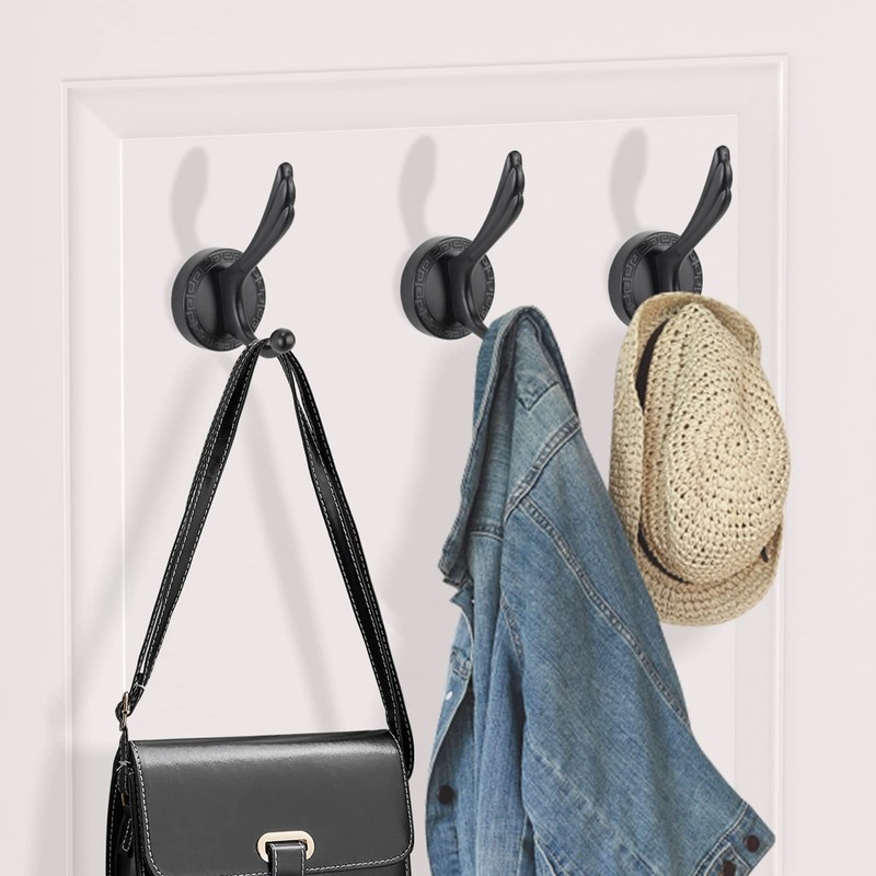 KITHOLD Coat Hooks for Wall, 6 Pack Wall Mounted Double Metal Robe Hooks, Heavy Duty Hardware, Decorative Towel Hooks Bathroom, Closet Hooks Wall Hooks for Hanging Coats,Scarf,Towel,Bag - Black