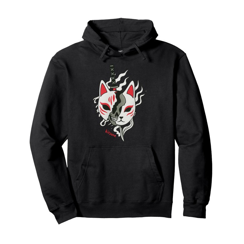 Kitsune Samurai Fox Nine-Tailed Mask Art Anime Pullover Hoodie