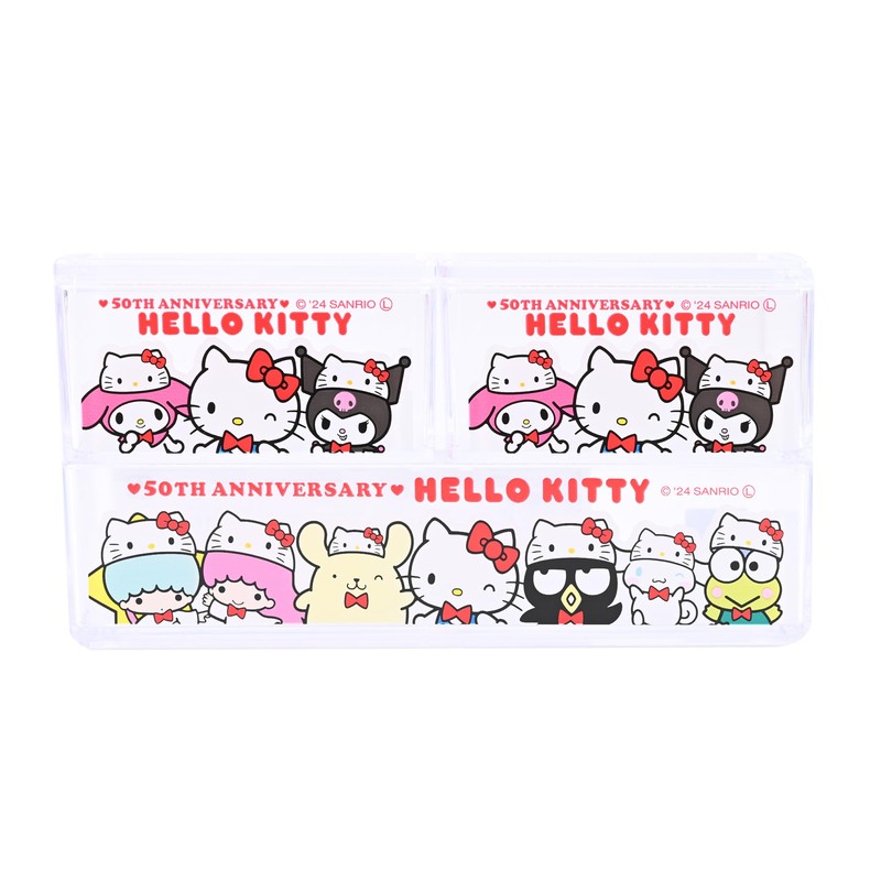 - β¨ ππππ ππ ππππππ πππ ππππ ππππππ ππππ πππππ? - The Kitty 50th Anniversary Acrylic Organizer Case isnβt just a tool, it's a whimsical journey into the classic world of beloved characters like Kitty and My-Melody; designed as a vanity organizer, it brings a delightful charm to your space, while efficiently storing your smallest treasures. Elevate your decorative game and relive fond memories with every glance, as this functional masterpiece offers practical storage wrapped in nostalgia.