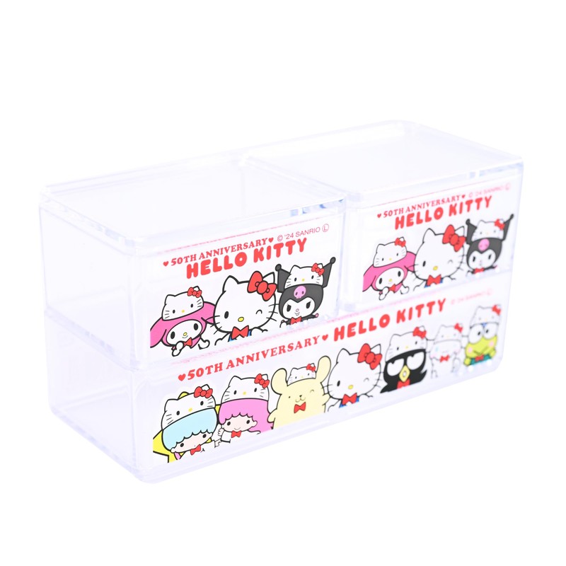 Kitty 50th Anniversary Acrylic Organizer Case - Stackable Acrylic Drawer for Organizing Makeup & Accessories, Small:3.07 x 1.65 x 2.36 inches | Medium:6.14 x 1.46 x 2.36 inches (Medium x1)