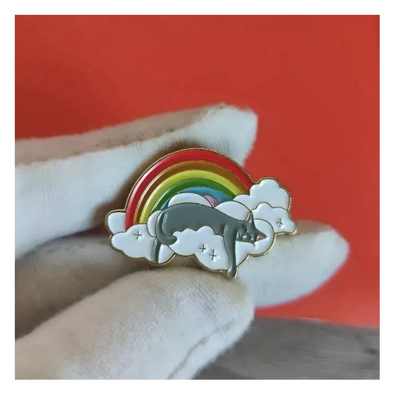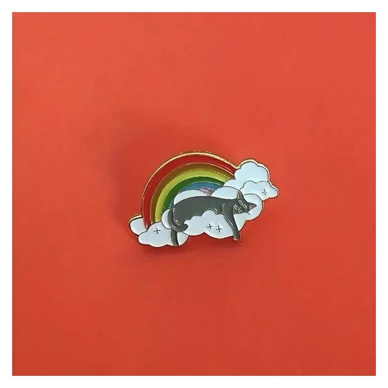 Kitty On A Rainbow Cloud Enamel Pin - Black Cat Resting - Subtle Pride