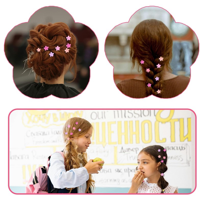 - 100 Mini Blumen Clips: Dieses süße haarklammer set enthält 100 kleine blumen haarkrallen in sanften lila- und rosatönen. Eine charmante und praktische ergänzung für den täglichen look oder verspielte party frisuren.