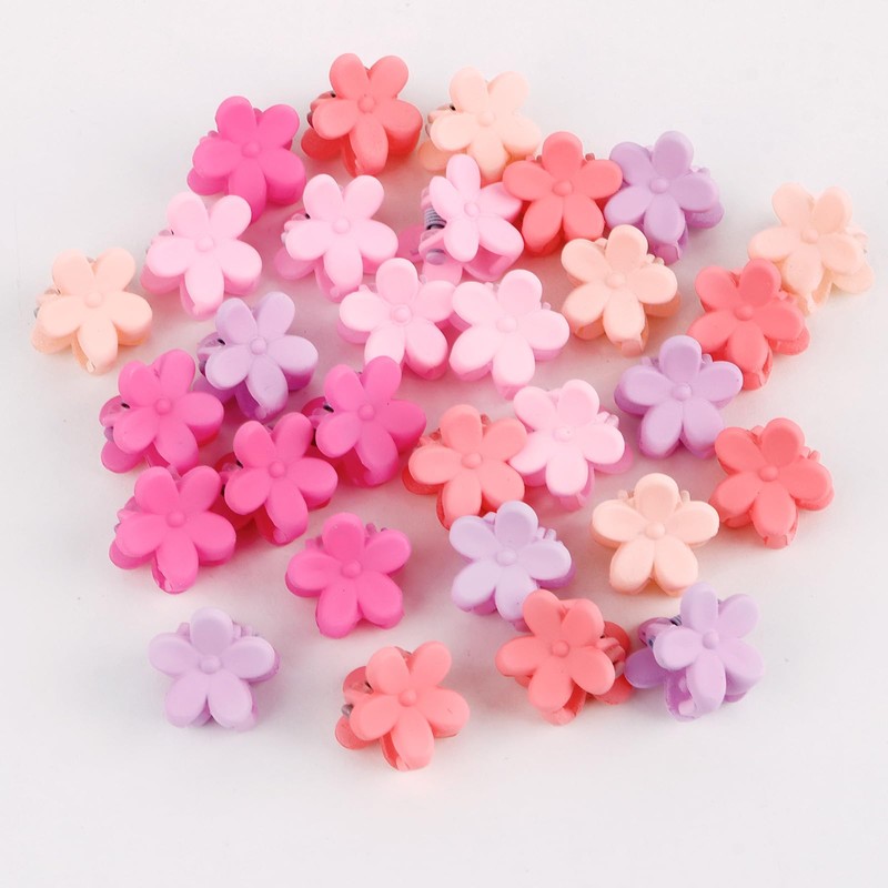KIUEZIR 100 Stück Kleine Blumen Haarspangen in Farbmischung, Langlebige Mini Krallenklammern aus Acryl mit Blumenmuster, Accessoires für Damen für das alltägliche Styling/Partys und Feines/Kurzes Haar