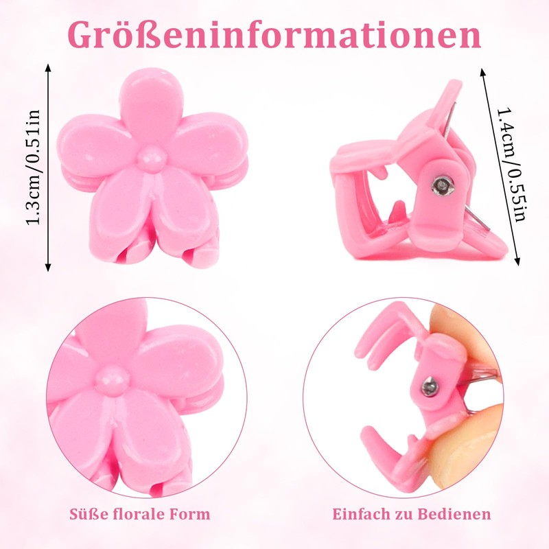 Bringe Farbe und Charme in deine Alltagsfrisuren mit diesem bezaubernden Set aus 100 kleinen blumen haarklammern für frauen und mädchen. In sanften Rosa- und Lilatönen gestaltet, eignen sich diese mini krallenclips perfekt für verspielte oder elegante looks – ideal für jede altersgruppe.