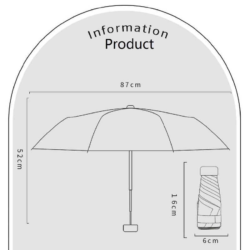 - Package includes: you will receive 1 windproof travel umbrella and 1 capsule case, the open size of the summer travel umbrella is: 87 x 52 cm / 34 x 21 inches, with a length of 16 cm / 6.3 inches when our lightweight umbrella is closed.