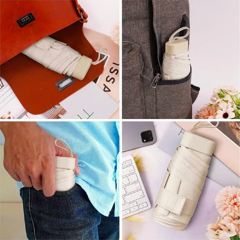 Kiuiom Mini Pocket Umbrella, Windproof, Foldable Compact Travel Umbrella, Small UV Umbrella with 6 Ribs, Pocket Umbrella for Men, Women, Teenagers for Sunny and Rainy Days, NO