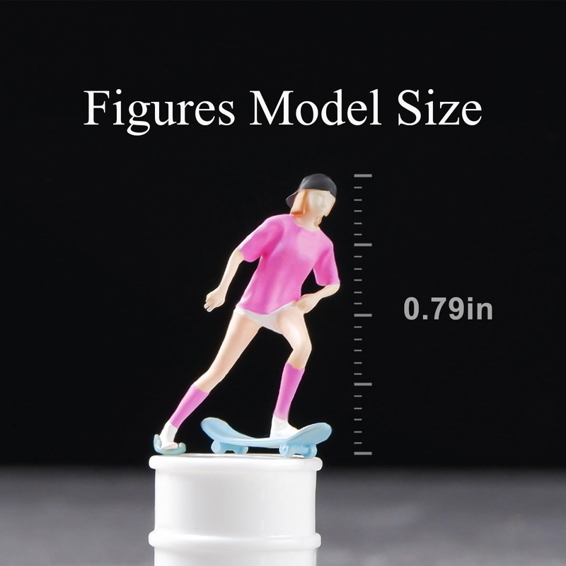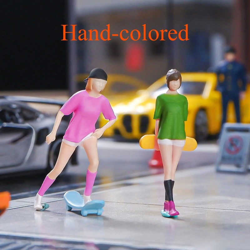 kivcmds 2pcs/Set 1:64 Scale Miniature Figures Hand Painted Tiny People Model Trains Diorama Scenery Architectural Character for Micro Landscape Collectible Craft,Skateboard Girl