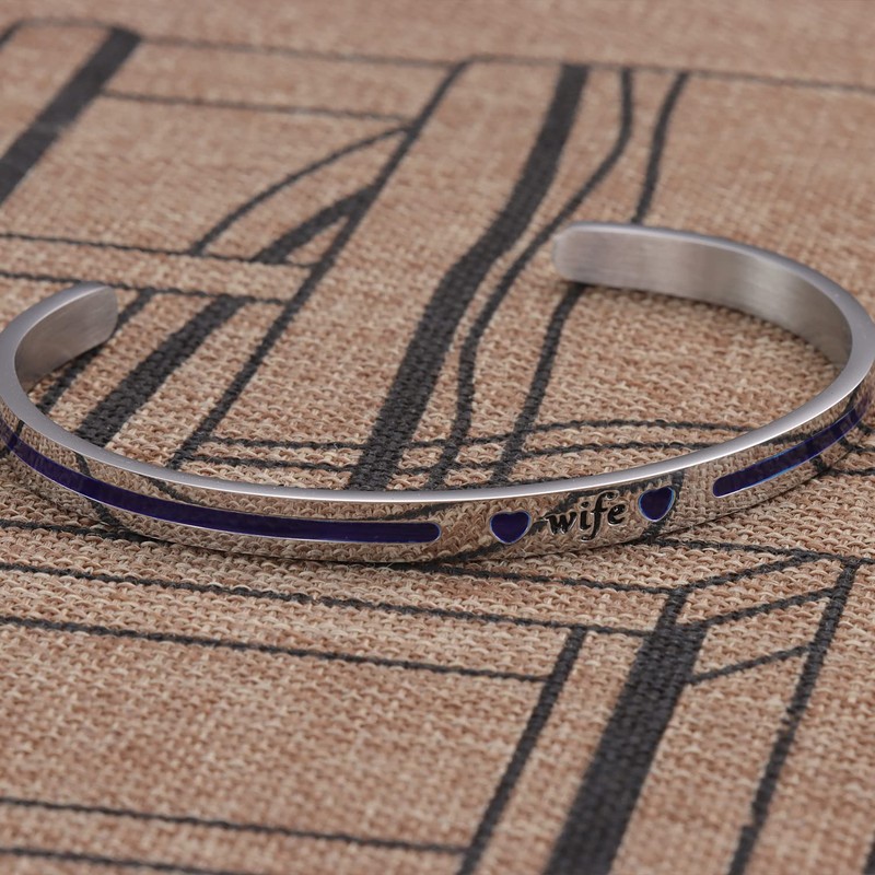 • Grabado "Wife". Delgada línea azul con corazones azules, corazón oficial policía, esposa, esposa, esposa, familia, novia. Diseñado para los cónyuges, sí mismos y seres queridos para honrar su valentía.