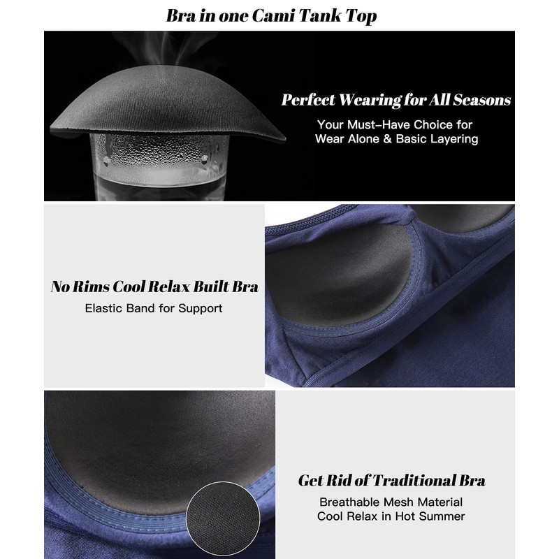 - ★ Special Design: Attractive round scoop neckline, Shoulder strap adjusters ensure a perfect fit. Cute casual stretched slim fit camisole tank top with built-in shelf bra that releases yourself in hot summer.