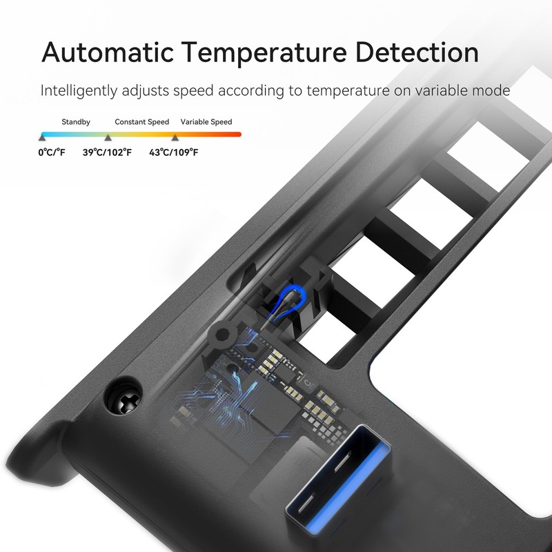 - Automatic Fan Speed AdjustmentEquipped with a smart temperature control system, KIWIHOME PS5 Slim fan can automatically monitor the console's temperature and adjust the fan speed/Power On/Off in real-time, no more manually having to turn it on each time, which makes it more convenient and energy-saving.