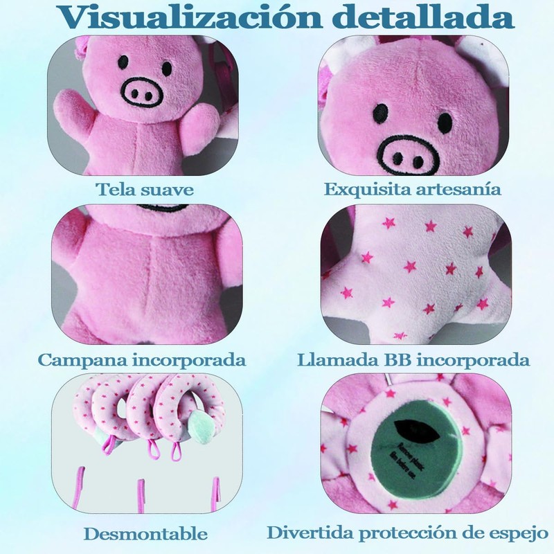 - 【Juguete de Asiento de Coche】: Ste juguete cuenta con suaves figuras de peluche para inspirar el juego. Los colores brillantes, los patrones divertidos y varios accesorios estimulan la vista del Niño. Hay un sonido bb incorporado en la parte superior del animal, que emitirá un sonido suave y dulce cuando se presione. Anime al Niño a tocar y explorar, y cultive la capacidad de coordinación ojo-mano y la capacidad de percepción del color del Niño.