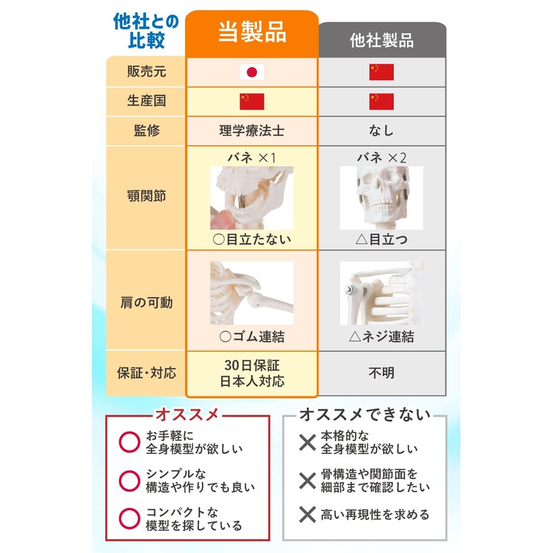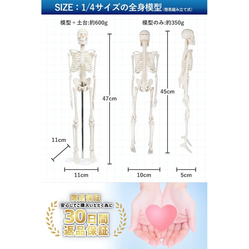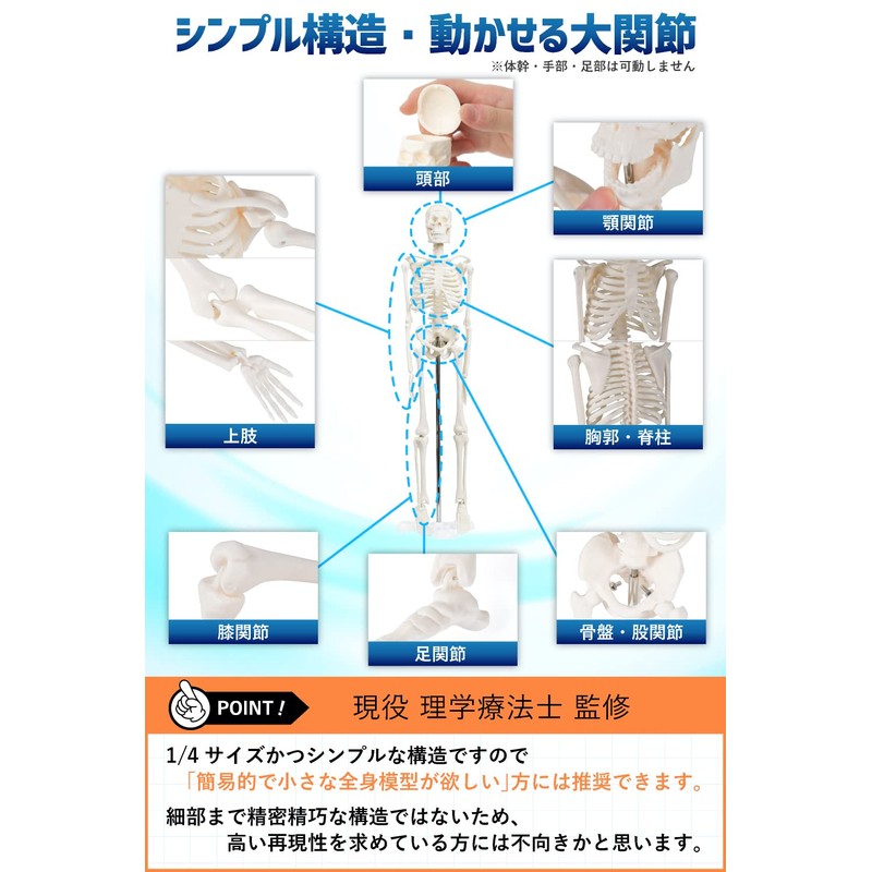 KIYOMARU Simple 1/4 Size Full Body Skeleton Model, Human Body Model, Mini, Physical The Supervised Skeleton, Bone Model, Tabletop Size, Approx. 17.7 inches (45 cm), Movable Large Joints