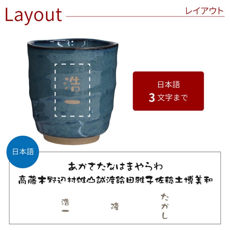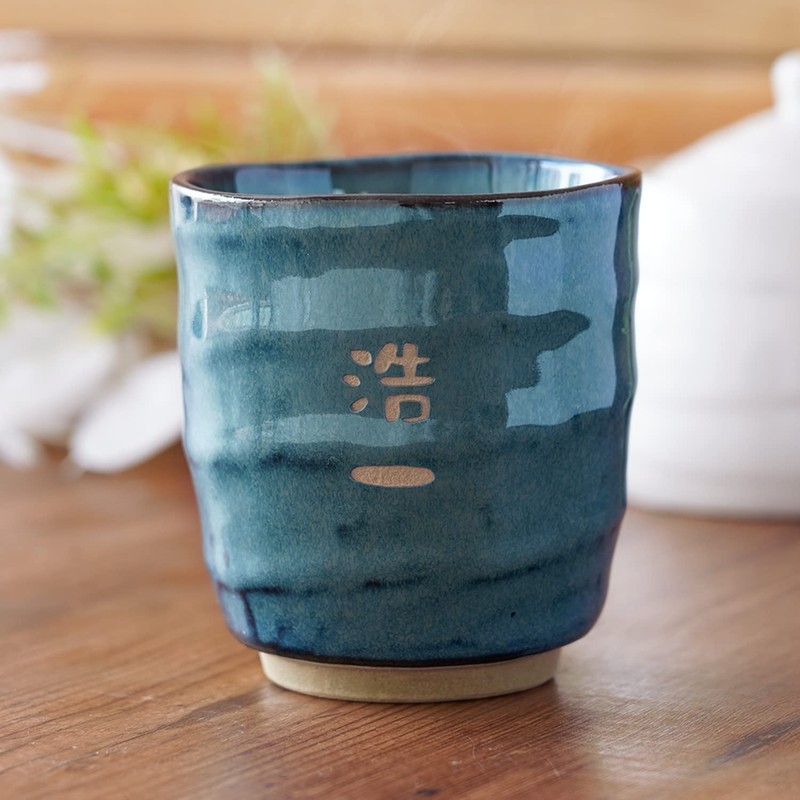 Kizamu Name Engraved Mino Ware Straw Sushi Tea Cup (Name Pattern), Gift (Uguisu Color)