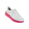 Kizik Womens Shoes: Sydney - Comfortable, Breathable, Casual Slip On Sneakers, Full Grain Tumbled Leather, Hands Free Convenience in a Timeless Style - White/Pink Peacock W10.5