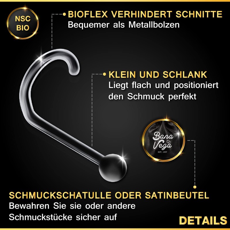 Bioflex prevents cuts and offers more comfort than metal, making it the perfect material for nose ring piercing.