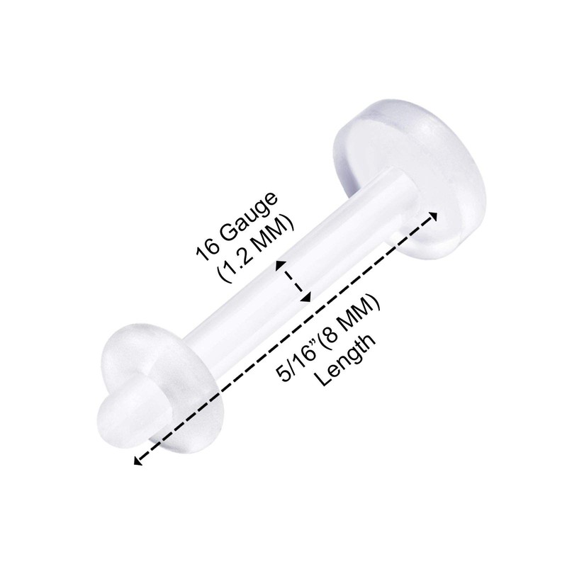 - Package includes 4 pieces. 1.2 mm (16 g) 8 mm (5/16 inch) clear, flexible acrylic piercing lip ring retainer, 3 mm clear acrylic ball.